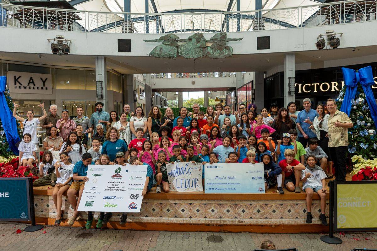 On December 11, 2025 about 75 keiki gathered enjoyed a festive day of shopping at locally owned stores at Queen Ka‘ahumanu as part of Ledcor Mauiʻs Makana no Nā Keiki (Gifts for Children) fundraiser.